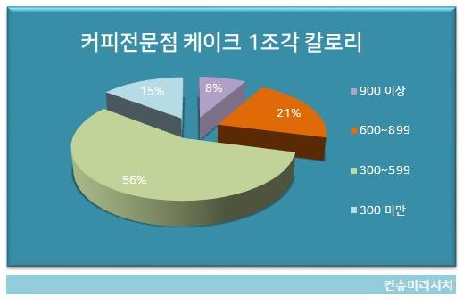 대형 프랜차이즈 커피전문점에서 후식으로 즐겨먹는 디저트 케이크 한 조각의 열량이 밥 한 공기 열량보다 훨씬 높은 것으로 조사됐다. 3개 중 1개 꼴로 공기밥 2~3공기 칼로리를 훌쩍 뛰어넘기도 했다. 소비자문제연구소 컨슈머리서치(대표 최현숙)가 대형 프랜차이즈 커피전문점 스타벅스, 커피빈, 엔제리너스, 투썸플레이스, 할리스, 파스쿠찌, 이디야커피에서 판매 중인 디저트 케이크 48개 제품을 대상으로 조사한 결과 한 조각 열량이 밥 한 공기 열량(300Kcal)보다 높은 제품들이 대다수였다. 900kcal 이상인 제품이 4개(8....